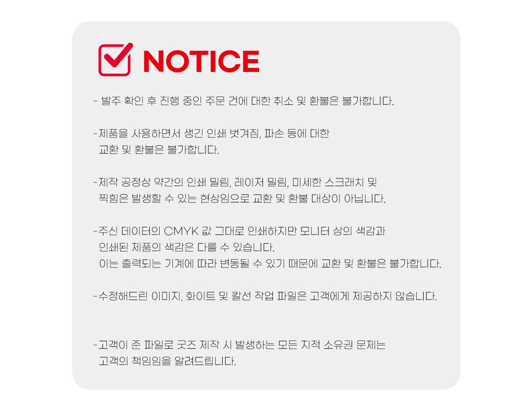 최종 굿즈제작은 입금확인 후 제작이 진행됩니다.